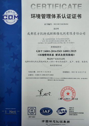 環(huán)境管理體系認(rèn)證證書